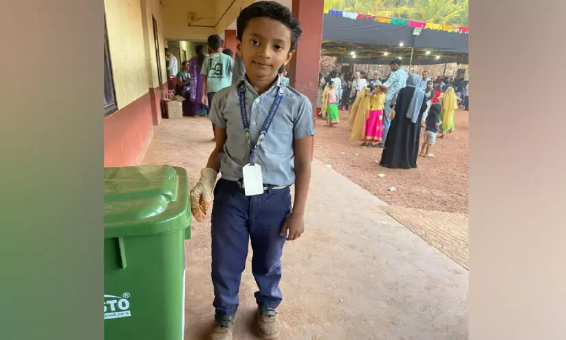 text_fieldsഅമീൻ റാസി സ്കൂൾ മുറ്റത്തെ മാലിന്യം പെറുക്കി ബിന്നിൽ നിക്ഷേപിക്കുന്നു