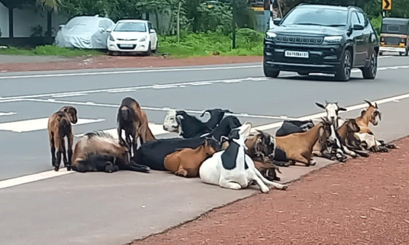 വാഹന യാത്രക്ക് ഭീഷണി; റോഡ് ‘ഉപരോധിച്ച്’ ആട്ടിൻകൂട്ടം