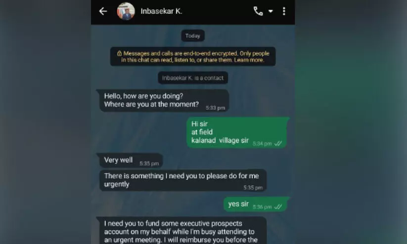 കലക്ടറുടെ പേരിൽ പണം ആവശ്യപ്പെട്ട് വ്യാജ വാട്സ്ആപ് സന്ദേശം