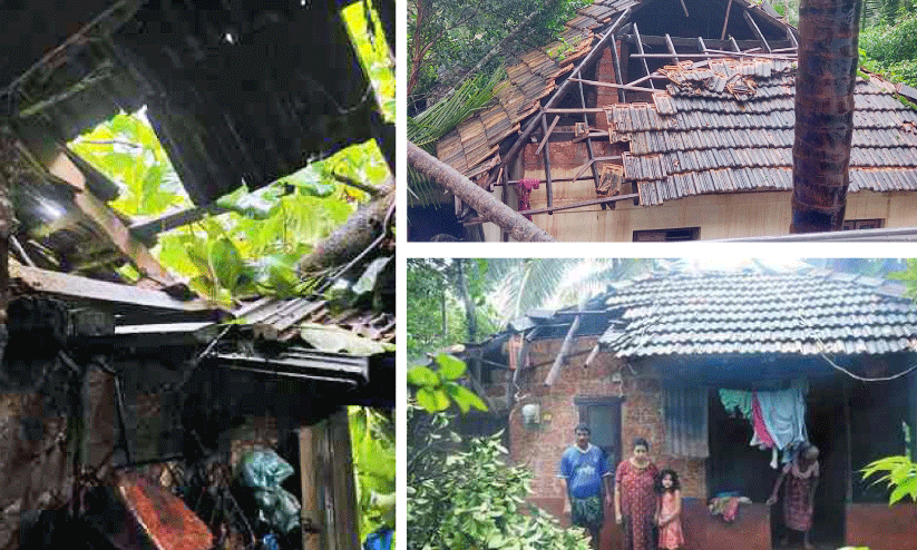 നീലേശ്വരം ചെമ്മാക്കരയിലെ വളപ്പിൽ നാരായണിയുടെ വീട് പൂർണമായും തകർന്നു. തെങ്ങ്, കവുങ്ങ്, മാവ് എന്നിവ പൊട്ടിവീണ് വീടിന്റെ മുകൾഭാഗം തകർന്നു. ലക്ഷം രൂപയുടെ നാശമുണ്ടായതായി കണക്കാക്കുന്നു. നീലേശ്വരം വില്ലേജ് ഓഫിസർ കെ.വി. ബിജു, കൗൺസിലർ പി. കുഞ്ഞിരാമൻ എന്നിവർ സ്ഥലം സന്ദർശിച്ചു.