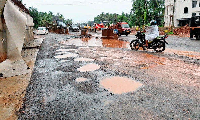 text_fieldsദേശീയപാതയിൽ എരിയാൽ പാലത്തിന് സമീപം റോഡിൽ ചളിവെള്ളം കെട്ടിനിൽക്കുന്ന കുഴികൾ