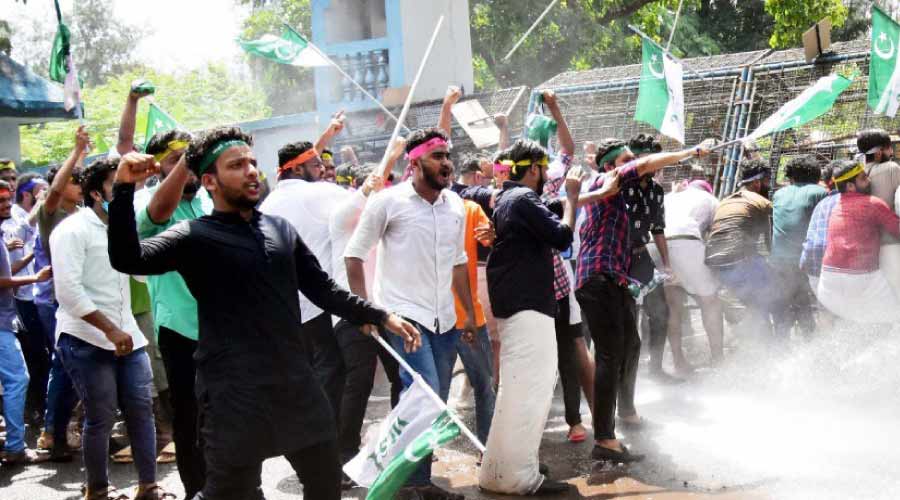 തുടർന്ന് സമരക്കാരിൽ ചിലർ ബാരിക്കേഡിലേക്ക് തള്ളിക്കയറാൻ ശ്രമിച്ചു. ഇതോടെ, പൊലീസും സമരക്കാരും തമ്മിൽ ഉന്തും തള്ളുമായി. തുടർന്ന് പൊലീസ് ജലപീരങ്കി പ്രയോഗിച്ചു. ഇതിൽ പ്രതിഷേധിച്ച് സമരക്കാർ ദേശീയപാത ഉപരോധിച്ചു. മുസ്ലിം ലീഗ്, യൂത്ത് ലീഗ് നേതാക്കളെത്തിയാണ് പ്രതിഷേധക്കാരെ പിന്തിരിപ്പിച്ചത്. മാർച്ച് യൂത്ത് ലീഗ് അഖിലേന്ത്യാ ജനറൽ സെക്രട്ടറി അഡ്വ. ഫൈസൽ ബാബു ഉദ്ഘാടനം ചെയ്തു. എം.എസ്.എഫ് ജില്ല പ്രസിഡൻറ് അനസ് എതിർത്തോട് അധ്യക്ഷത വഹിച്ചു. ജനറൽ സെക്രട്ടറി ഇർഷാദ് മൊഗ്രാൽ സ്വാഗതം പറഞ്ഞു