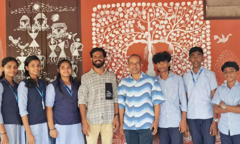 ചോക്കും കരിക്കട്ടയുംകൊണ്ട് ചുവരുകളിൽ ചിത്രങ്ങൾ തീർത്ത് വിദ്യാർഥികൾ