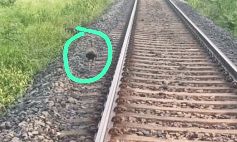 text_fieldsമൊഗ്രാലിൽ റെയിൽവേ ട്രാക്കിലൂടെ നടക്കുന്ന മയിൽ