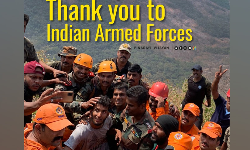 രക്ഷാപ്രവർത്തനങ്ങൾക്ക് നേതൃത്വം നൽകിയ ഇന്ത്യൻ സേനയുടെ മദ്രാസ് റെജിമെന്റിലെ സൈനികർ, പാരാ റെജിമെന്റ് സെന്ററിലെ സൈനികർ, രക്ഷാപ്രവർത്തനം ഏകോപിപ്പിച്ച ദക്ഷിണ ഭാരത ഏരിയ ജി.ഒ.സി ലഫ്റ്റനന്റ് ജനറൽ അരുൺ എന്നിവരുടെ സഹായത്തിന് മുഖ്യമന്ത്രി ഫേസ്ബുക്ക് പോസ്റ്റിലൂടെ നന്ദി അറിയിച്ചു.