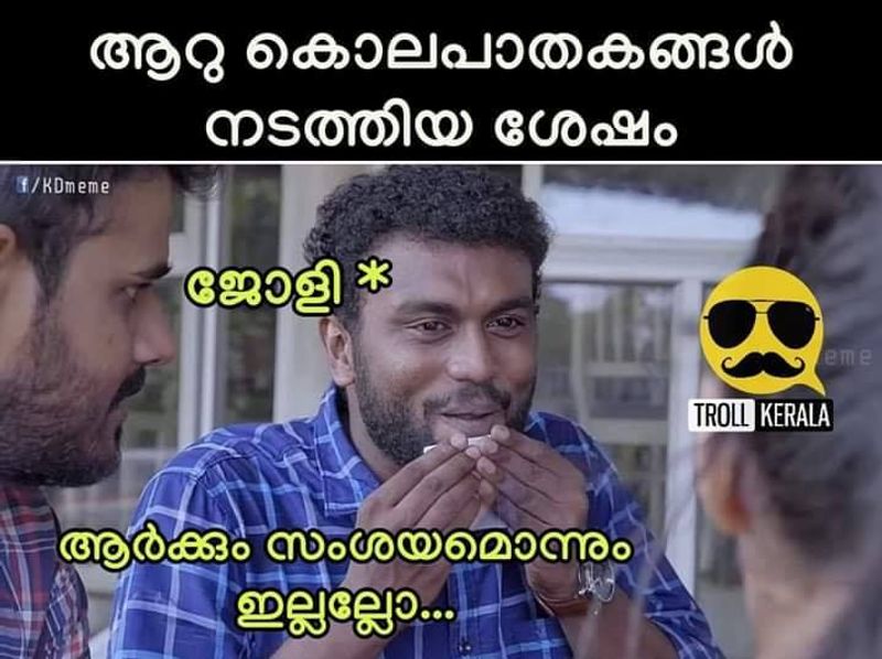കൂടത്തായിയിലെ കൊലപാതക പരമ്പര മലയാളികൾക്കിടയിൽ ഉണ്ടാക്കിയ അമ്പരപ്പ് ചെറുതല്ല. മാധ്യമങ്ങളിലും നാടൊട്ടുക്കും സോഷ്യൽമീഡിയകളിലും ജോളിയെന്ന സ്ത്രീയുടെ ക്രൂരതയും കൊലപാതങ്ങളുമാണ് ഇപ്പോൾ ചർച്ച. ജോളിക്കെതിരെ നിരവധി ട്രോളുകളാണ് സാമൂഹിക മാധ്യമങ്ങളിൽ പ്രചരിക്കുന്നത്. സയനൈഡ് ഉപയോഗിച്ചാണ് ജോളി ഇത്രയും പേരെ കൊന്നതിനാൽ ഇതുമായി ബന്ധപ്പെടുത്തിയാണ് ട്രോളുകൾ പ്രചരിക്കുന്നത്.