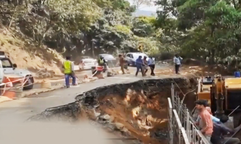ചുരം റോഡ് വീണ്ടും ഇടിഞ്ഞു; വാഹനങ്ങൾക്ക് ഭീഷണി, കൂടുതൽ നിയന്ത്രണങ്ങൾ