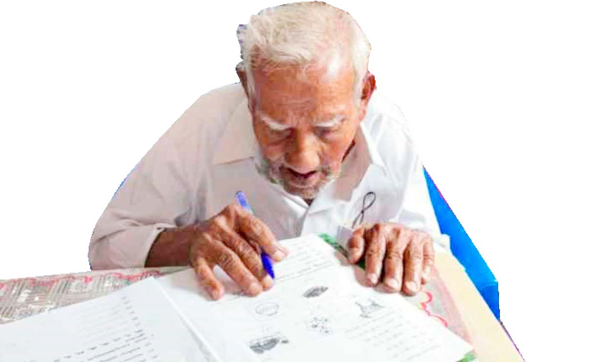 സാക്ഷരത മിഷൻ പരീക്ഷ: 150 ചോദ്യങ്ങൾക്കും ഉത്തരമെഴുതി 104 കാരൻ ജെയിംസ് താരമായി