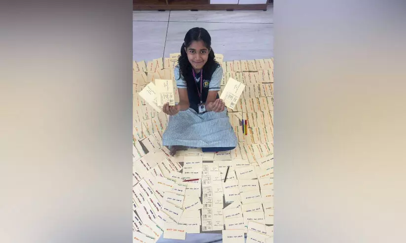 കായംകുളം: ഫസ്ന ഫൈസൽ, ക്ലാസ്- 5 എ, സെന്റ് തോമസ് ഇംഗ്ലീഷ് മീഡിയം സ്കൂൾ, കറ്റാനം, ആലപ്പുഴ ജില്ല എന്ന വിലാസത്തിൽ നിന്ന് കൂട്ടുകാരെ തേടി സൗഹൃദത്തിന്റെ സ്നേഹ സന്ദേശവുമായി എത്തിയ പുതുവത്സര കാർഡുകൾ വേറിട്ട സ്നേഹ സമ്മാനമായി. എല്ലാ ക്ലാസ് മുറികളിലെയും കൂട്ടുകാരെ തേടി ഫസ്ന ഫൈസലിന്റെ കൈപ്പടയിൽ തയാറാക്കിയ ആശംസ കാർഡുകൾ എത്തും. കുട്ടികളും അധ്യാപകരും അടക്കമുള്ളവർക്കായി 1036 കാർഡുകളാണ് പോസ്റ്റ് ചെയ്തത്. 2025 ആഗസ്റ്റ് മുതലാണ് കാർഡ് തയാറാക്കൽ തുടങ്ങിയത്. ദിവസവും പഠന ശേഷമുള്ള ഒരു മണിക്കൂറാണ് ഇതിനായി ചെലവഴിച്ചത്.