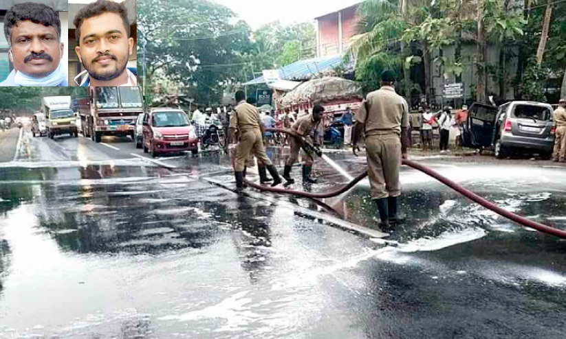 text_fieldsദേശീയപാതയില് അപകടമുണ്ടായ സ്ഥലം വൃത്തിയാക്കുന്ന അഗ്നിസുരക്ഷാസേന, ഇൻസൈറ്റിൽ രക്ഷാപ്രവർത്തനം നടത്തിയ ഉണ്ണികൃഷ്ണനും നന്ദുവും