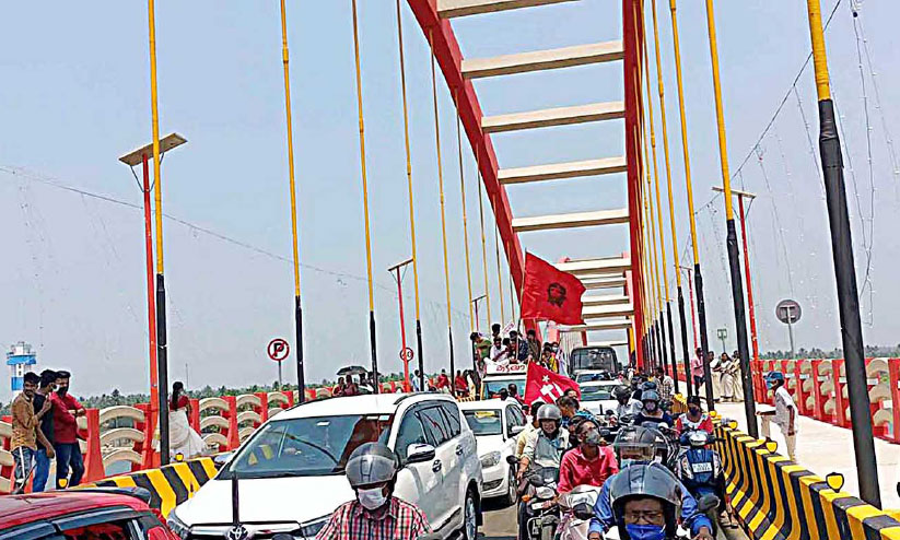 തീരദേശപാതക്ക് വീതി കുറവാണ്. ഇതിനൊപ്പം വലിയഴീക്കൽ മുതൽ തറയിൽക്കടവുവരെ റോഡിന്റെ വശങ്ങളിൽ പലയിടത്തും കടലേറ്റത്തിൽ അടിച്ചുകയറ്റിയ മണലും കൂട്ടിവെച്ചിരിക്കുന്നു. റോഡിന്റെ പകുതിയിലേറെ ഭാഗത്തേക്ക് മണൽ കയറിക്കിടക്കുന്ന അവസ്ഥയുണ്ട്. ഇതും കുരുക്ക് രൂക്ഷമാകാൻ കാരണമാകുന്നു. പാലത്തിന്റെ ഉദ്ഘാടനത്തോടനുബന്ധിച്ച് വിവിധ പണികൾ നടന്ന വേളയിൽ മണൽ നീക്കാൻ കഴിയുമായിരുന്നെങ്കിലും അധികാരികൾ പ്രശ്നം ഗൗരവത്തിലെടുത്തില്ല. പാലത്തിലും ഗതാഗതക്കുരുക്ക് രൂക്ഷമാണ്. ഇരുകരയിൽനിന്നുമുള്ളവർ കൂട്ടത്തോടെ പാലത്തിലേക്ക് എത്തുന്നുണ്ട്. പാലത്തിൽ നിന്ന് കാഴ്ചകൾ കാണാൻ വാഹനങ്ങൾ നിർത്തിയിടുന്നതും തടസ്സമുണ്ടാക്കുന്നു. ഗതാഗതപ്രശ്നം തീരദേശവാസികളെയും ഗുരുതരമായി ബാധിക്കുന്നു.