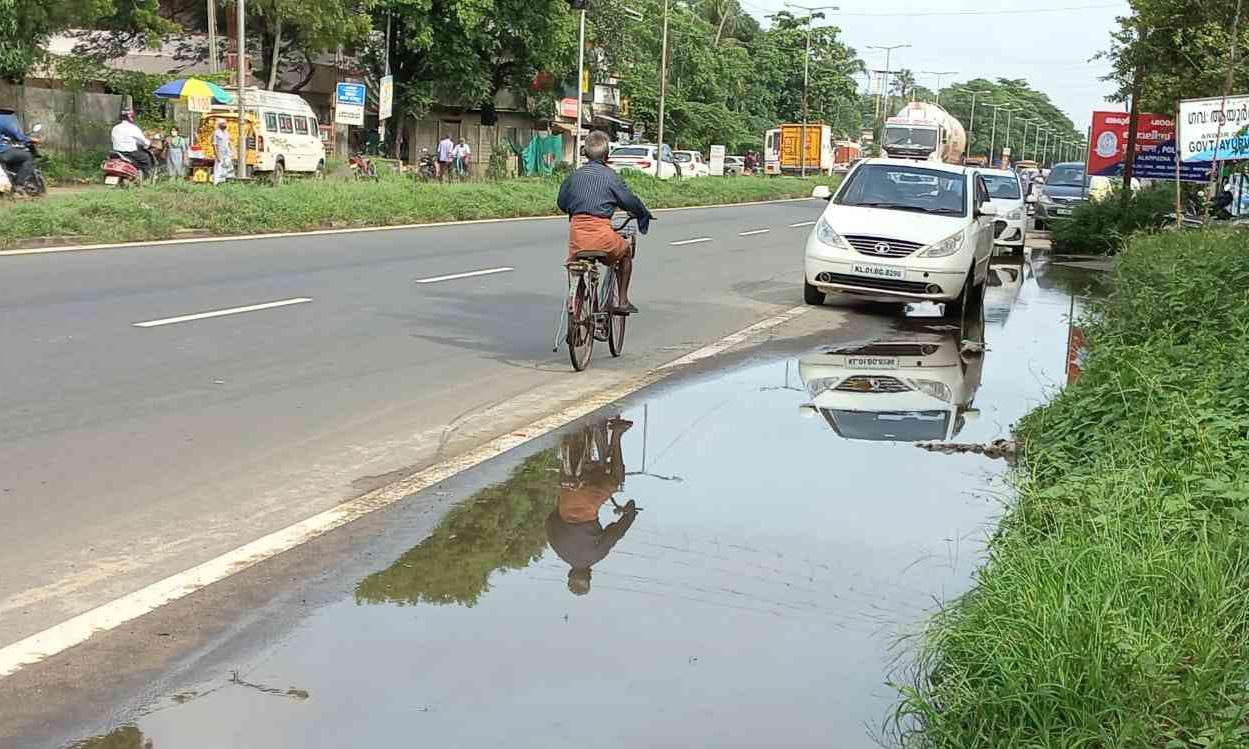 text_fieldsദേശിയപാതയിൽ ചന്തിരൂർ പൊലിസ് സ്റ്റേഷനു സമീപത്തെ വെള്ളക്കെട്ട്