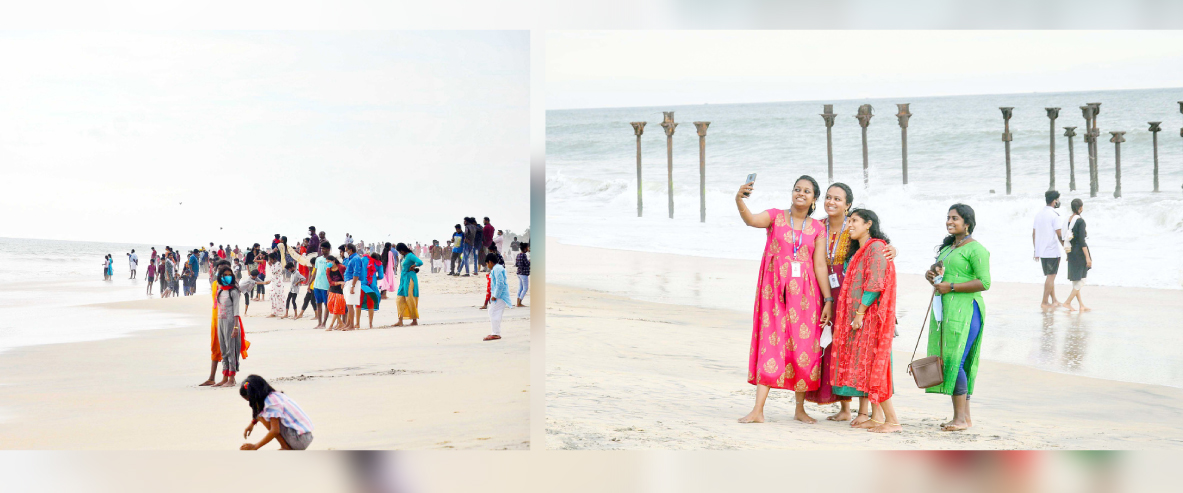 ഞായറാഴ്ച വൈകുന്നേരമായപ്പോൾ തിരക്ക് ഏറെ വർധിച്ചു. കടലോരങ്ങളിൽ കുടുംബസമേതമെത്തിയവർ കുട്ടികളുമായി ആർത്തുല്ലസിച്ചപ്പോൾ കൗമാരക്കാർ തകർന്ന കടൽപ്പാലത്തിെനാപ്പം സെൽഫിയെടുത്താണ് അതിജീവനം ആഘോഷമാക്കിയത്. 10 മാസത്തെ ഇടവേളക്കുശേഷം ബീച്ച് തുറക്കുന്നതോടെ കടപ്പുറത്തെ ആശ്രയിച്ച് ജീവിക്കുന്ന ചെറുകിടവ്യാപാരികൾ കടകൾ വൃത്തിയാക്കിയും സാധനങ്ങൾ വാങ്ങിക്കൂട്ടിയും ജനത്തെ വരവേറ്റു. ചിലർ ആൾത്തിരക്ക് മുന്നിൽ കണ്ട് നേരത്തേ കടകളും തുറന്നിരുന്നു.