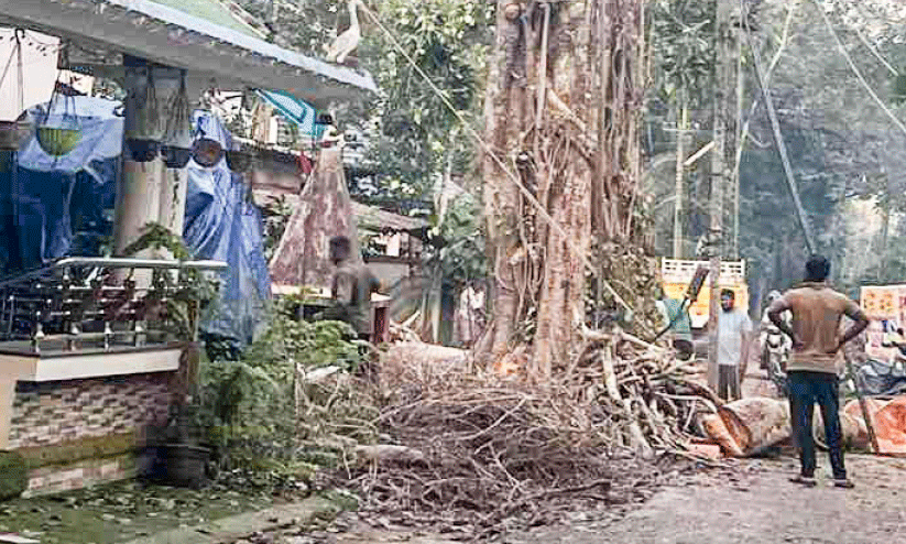 കൂടാതെ ലൈൻ അഴിച്ചുമാറ്റുന്നതിന് ഭീമമായ തുക വൈദ്യുതി ഓഫിസിലും പഞ്ചായത്ത് അടച്ച ശേഷമായിരുന്നു നടപടി. മുകളിലെ ശിഖരം മുറിക്കാനായി വിളിച്ചുവരുത്തിയവർ അവസരം മുതലെടുത്ത് നൂറ്റാണ്ട് പഴക്കമുള്ള മരത്തിന്റെ മുകൾ ഭാഗം പൂർണമായി വെട്ടിമാറ്റി. ഇതിൽ പ്രതിഷേധം ഉയർന്നതോടെ വെട്ടിയിട്ട തടികളുമായി സംഘം മുങ്ങുകയായിരുന്നു.