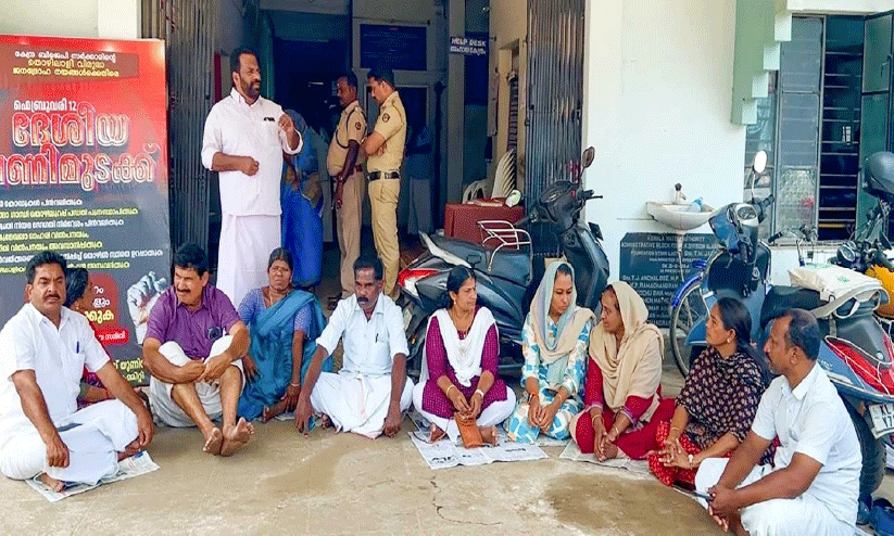 ഓഫിസിന് മുന്നിൽ നടത്തിയ കുത്തിയിരിപ്പ് സമരം കെ.പി.സി.സി ജനറൽ സെക്രട്ടറി