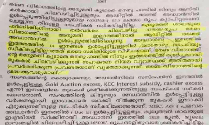 ഭരണസമിയുടെ അറിവോടെയായിരുന്ന് തിരിമറി നടന്നത്. മുൻ ഭരണസമിതിയുടെ കാലത്ത് നടന്ന അഴിമതി ഓഡിറ്റിലൂടെ കണ്ടെത്തിയതോടെ നേതാക്കൾ വെട്ടിലായി. നഷ്ടം മുൻ സെക്രട്ടറിയും ഭരണസമിതിയും വഹിക്കണമെന്നായിരുന്നു ഓഡിറ്റ് നിർദേശം.
