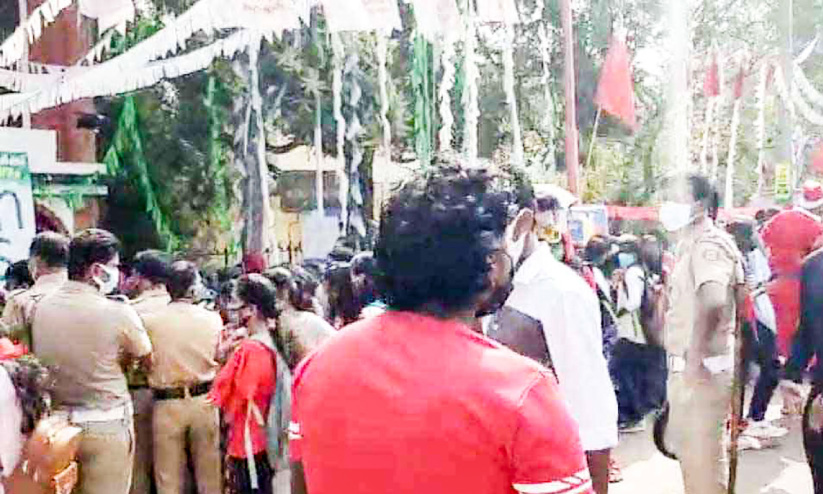 എന്നാൽ, വിലക്ക് ലംഘിച്ച് നൂറുകണക്കിന് വിദ്യാർഥികൾ വ്യാഴാഴ്ച രാവിലെ തന്നെ കോളജ് കവാടത്തിൽ എത്തുകയായിരുന്നു. നിരോധനവും അധികൃതരുടെ നിർദേശങ്ങളും ലംഘിച്ച് കുട്ടികൾ ബലപ്രയോഗത്തിലൂടെ േഗറ്റ് തുറന്ന് കയറുേമ്പാൾ കാഴ്ചക്കാരുടെ റോളിലേക്ക് പൊലീസ് ഉൾവലിഞ്ഞതാണ് പ്രശ്നങ്ങൾക്ക് കാരണം.