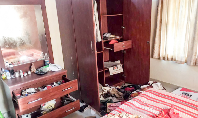 അലമാരകളിൽ സൂക്ഷിച്ച വസ്ത്രങ്ങൾ, രണ്ട് ടെലിവിഷനുകളടക്കമുള്ള ഇലക്ട്രോണിക്സ്-ഇലക്ട്രിക് ഉപകരണങ്ങൾ, പാചകവാതക അടുപ്പ് തുടങ്ങിയവയാണ് കവർന്നത്. അഞ്ചു ലക്ഷത്തോളം രൂപയുടെ സാധനങ്ങൾ നഷ്ടമായതായി പറയുന്നു. വീട് വൃത്തിയാക്കാൻ ബന്ധുക്കൾ ഇടക്കിടെ വരാറുണ്ട്. ഒരു മാസം മുമ്പാണ് അവസാനമായി എത്തിയത്.