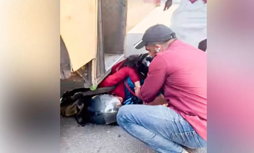 ബസിനടിയിൽപെട്ട് സ്കൂട്ടർ യാത്രികരായ നഴ്സുമാർക്ക് പരിക്ക്