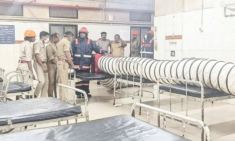 ഐ.സി.യുവിൽ ഏഴ് രോഗികളും 10 ഓളം ജീവനക്കാരുമുണ്ടായിരുന്നു. ഐ.സി.യുവിലെ അത്യാസന്ന നിലയിലായ രോഗികളെ മാറ്റാൻ കഴിയുമായിരുന്നില്ല. ഇതിനാൽ ഐ.സി.യുവിൽ നിറഞ്ഞു നിന്ന വായു പ്രത്യേകം പമ്പ് ഉപയോഗിച്ച് പുറത്തേക്ക് കളഞ്ഞു. വാർഡിലെയും ഐ.സി.യുവിലെയും ഗ്യാസ് സിലിണ്ടറുകൾ പരിശോധിച്ചെങ്കിലും ഇതിൽ ചോർച്ചയില്ലെന്ന് കണ്ടെത്തി.