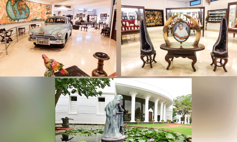 ആദ്യ കാഴ്ച 1947 മോഡൽ ബ്യൂക് സൂപ്പർ കാറാണ്. ഇന്നും അതിന്റെ പ്രൗഢി കണ്ടാൽ ചുറ്റിപ്പറ്റി കുറെനേരം നിന്നുപോകും. പുരാതനമായ തഞ്ചാവൂർ ചിത്രങ്ങളുടെ ശേഖരവും ഏറെയുണ്ട്. ആനക്കൊമ്പിൽ നിർമിച്ച ശിൽപങ്ങളുടെ വിപുല ശേഖരമാണ് അടുത്ത ആകർഷണം. മഹാവിഷ്ണുവിന്റെ ദശാവതാരങ്ങൾ, ഗണപതി, കൃഷ്ണൻ തുടങ്ങിയ ദേവവന്മാരുടെ രൂപങ്ങൾ ഒറ്റകൊമ്പിലും അല്ലാതെയും പണിതൊരുക്കിവെച്ചിരിക്കുന്നു. വർഷങ്ങളുടെ പഴക്കമുള്ള അവ സർക്കാർ അനുമതിയോടെയാണ് പ്രദർശനത്തിന് വെച്ചിരിക്കുന്നത്.