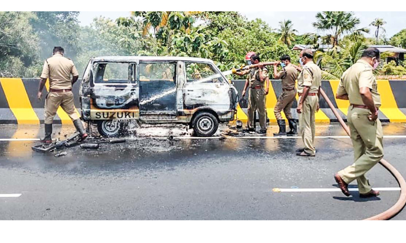 ഓട്ടത്തിനിടെ വാൻ കത്തിനശിച്ചു; ഡ്രൈവർക്ക് പൊള്ളലേറ്റു