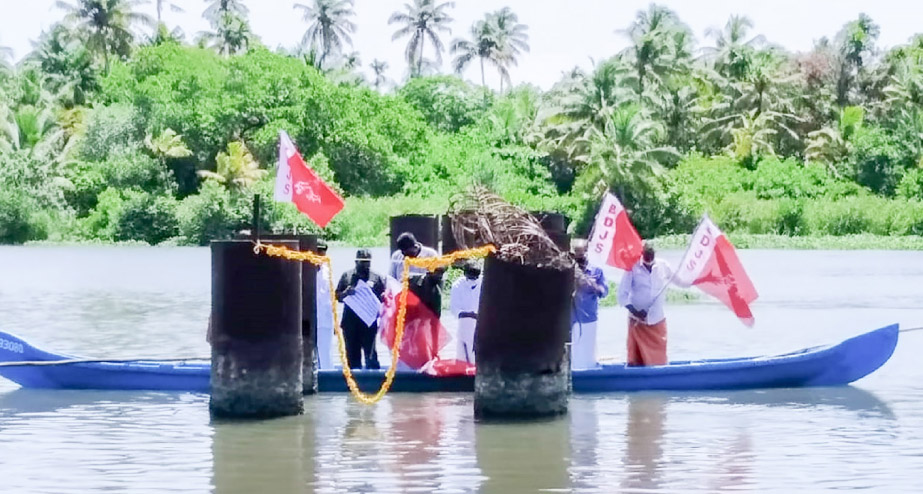 പാലം നിർമിക്കണമെന്ന് ആവശ്യപ്പെട്ട് ബി.ഡി.വൈ.എസ് അരൂർ മണ്ഡലം കമ്മിറ്റി നേതൃത്വത്തിൽ പ്രതീകാത്മക ഊഞ്ഞാൽ പില്ലറുകളിൽകെട്ടി പ്രതിഷേധിച്ചു. ജില്ല പ്രസിഡൻറ് ടി. അനിയപ്പൻ ഉദ്ഘാടനം ചെയ്തു. പഞ്ചായത്ത് കമ്മിറ്റി വൈസ് പ്രസിഡൻറ് ആർ. അനിൽകുമാർ, കാക്കത്തുരുത്ത് യൂനിറ്റ് പ്രസിഡൻറ് ബാലകൃഷണൻ, ജില്ല കമ്മിറ്റി അംഗം ദിലീപ് കുമാർ, ബി.ഡി.വൈ.എസ് മണ്ഡലം പ്രസിഡൻറ് അനിൽ രാജ് പീതാംബൻ എന്നിവർ സംസാരിച്ചു.