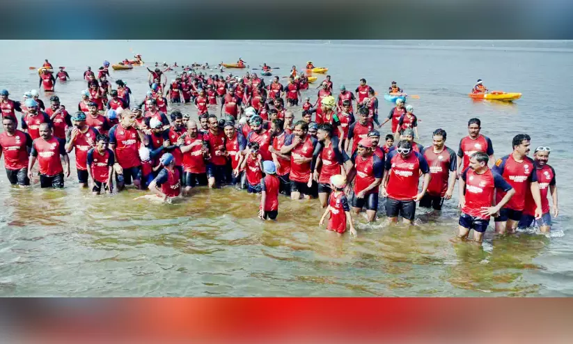 വേമ്പനാട് കായലിലെ 2.4 കി.മീറ്റർ നീന്തിക്കടന്ന് ആലുവയുടെ നീന്തൽസംഘം
