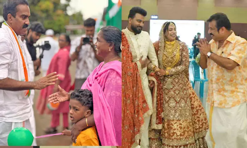 text_fieldsഎടത്തല പഞ്ചായത്തിൽ യു.ഡി.എഫ് സ്ഥാനാർഥി അൻവർ സാദത്ത് വീട്ടമ്മയോട് വോട്ട് ചോദിക്കുന്നു, എൽ.ഡി.എഫ് സ്ഥാനാർഥി എ.എം. ആരിഫ് ശനിയാഴ്ച വിവാഹ ചടങ്ങിൽ നവദമ്പതികളോട് വോട്ടഭ്യർഥിക്കുന്നു