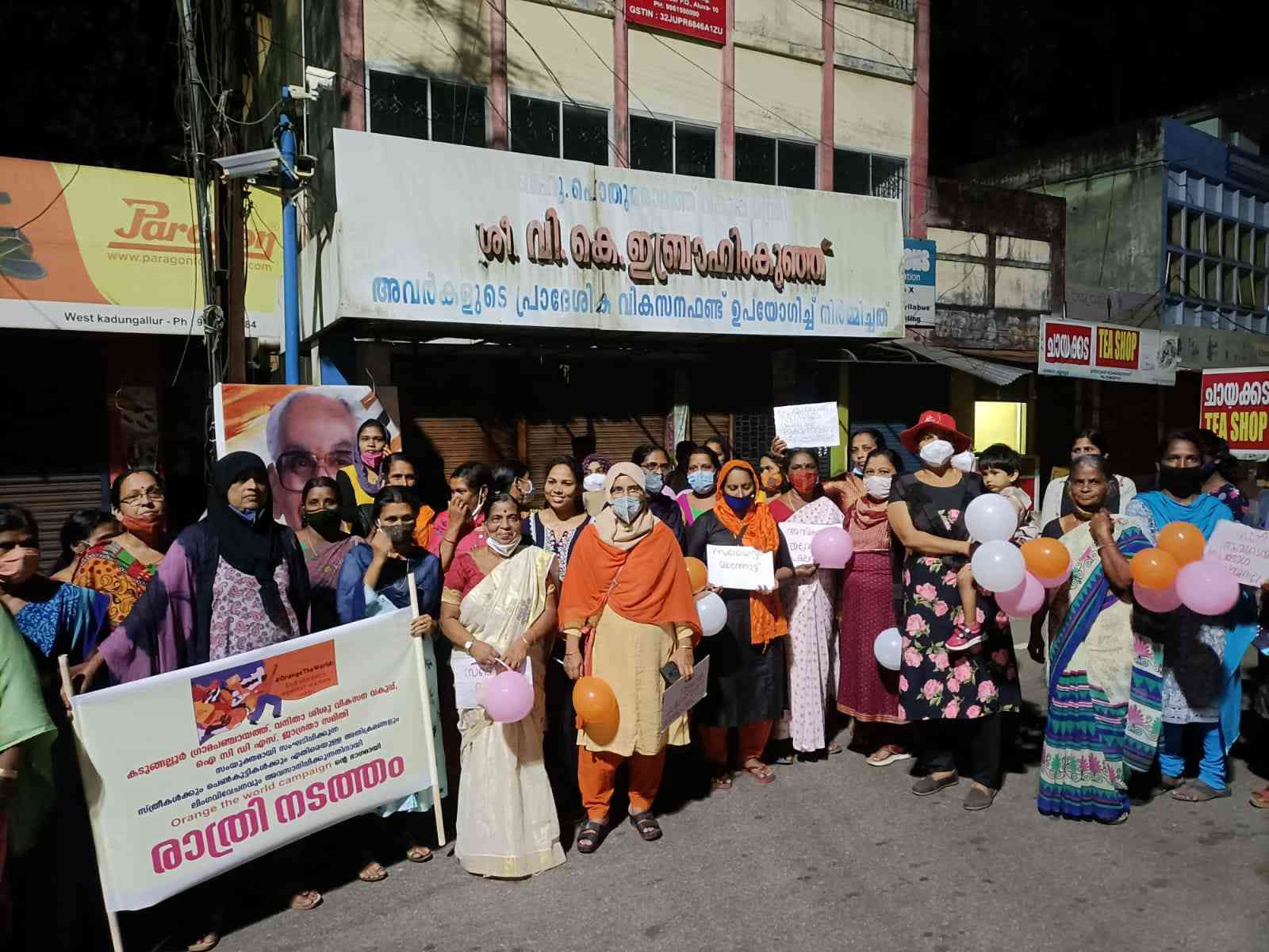 കടുങ്ങല്ലൂർ: കടുങ്ങല്ലൂർ ഗ്രാമപഞ്ചായത്ത്, വനിത ശിശു വികസന വകുപ്പ്, ഐ.സി.ഡി.എസ്, ജാഗ്രത സമിതി എന്നിവരുടെ ആഭിമുഖ്യത്തില് 'രാത്രി നടത്തം' സംഘടിപ്പിച്ചു. സ്ത്രീകൾക്കും പെൺകുട്ടികൾക്കും എതിരെയുള്ള അതിക്രമങ്ങളും ലിംഗവിവേചനവും അവസാനിപ്പിക്കണമെന്ന മുദ്രാവാക്യം ഉയർത്തിയാണ് രാത്രി നടത്തം സംഘടിപ്പിച്ചത്.