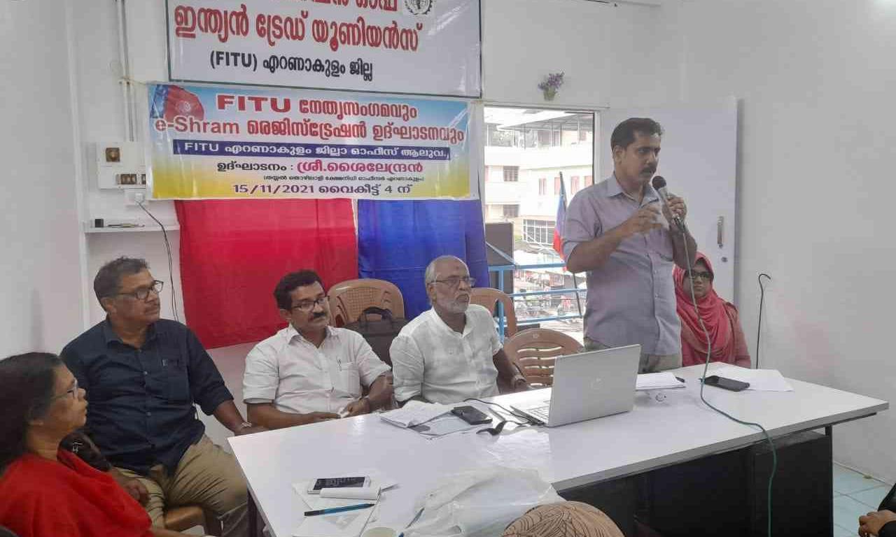 ഇ ശ്രം രജിസ്ട്രേഷൻ ഉദ്ഘടനം ജില്ല ടൈലറിങ് തൊഴിലാളി ക്ഷേമനിധി ഓഫിസർ ശൈലേന്ദ്രൻ ഉദ്ഘാടനം ചെയ്തു. എഫ്.ഐ.ടി.യു ജില്ല പ്രസിഡൻറ് എം.എച്ച്. മുഹമ്മദ് മുഖ്പ്രഭാഷണം നടത്തി. മേരി ജോസ്, റഹീം കുന്നത്, ഫാത്തിമ അബ്ബാസ്, ജൈമോൾ, റഷീദ നാസർ എന്നിവർ സംസാരിച്ചു.
