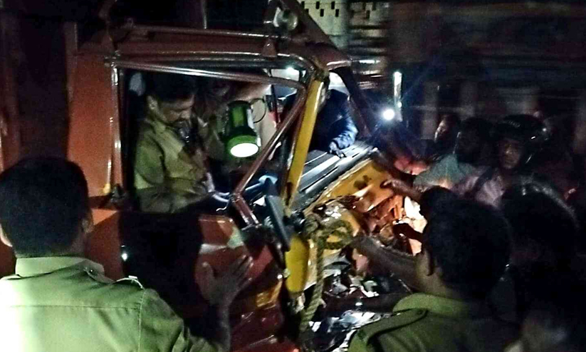 കണ്ടെയ്നർ ലോറിക്ക് പിന്നിൽ മിനിലോറി ഇടിച്ച് ഡ്രൈവർക്ക് പരിക്ക്