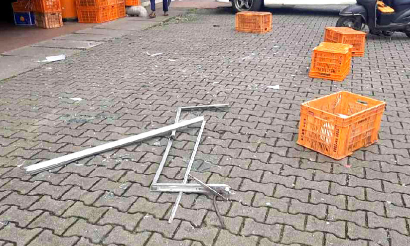 ബഹുനില മന്ദിരത്തിെൻറ ഒന്നാം നിലയിലെ അലൂമിനിയം ജനൽ ഫ്രെയിം ഒന്നാകെ ഇളകിയാണ് വടക്ക് പടിഞ്ഞാറ് പ്രവേശന കവാടത്തിലെ ഫ്രൂട്സ് കടയുടെ വരാന്തയിൽ പതിച്ച് ചിന്നി ചിതറിയത്. ഈ സമയം കടയുടെ മുന്നിലും ബസ് സ്റ്റാൻഡിൽ വന്ന് പോകുന്ന യാത്രക്കാരില്ലാതിരുന്നതാണ് ദുരന്തം ഒഴിവായത്.