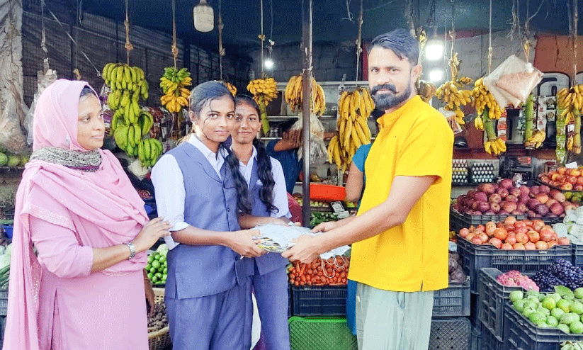 text_fieldsവിദ്യാർഥികൾ നിർമിച്ച പേപ്പർ ബാഗ് സൗജന്യമായി സമീപത്തെ വ്യാപാര സ്ഥാപനങ്ങളിൽ വിതരണം ചെയ്യുന്നു