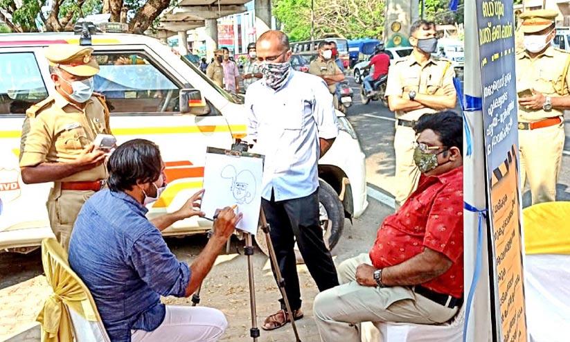 കാർട്ടൂണിസ്റ്റ് ഇബ്രാഹിം ബാദുഷയുടെ സഹകരണത്തോടെയാണ് പരിപാടി നടപ്പാക്കിയത്. വൈകീട്ട് മൂന്നുമുതൽ ആറുവരെ നടത്തിയ ബോധവത്കരണ പരിപാടിയിൽ നിരവധി പേർ കുടുങ്ങി. പോപ്പുലർ ഹ്യുണ്ടായിയുമായി സഹകരിച്ച് നടത്തിയ ബോധവത്കരണത്തിന് െഡപ്യൂട്ടി ട്രാൻസ്പോർട്ട് കമീഷണർ റജി പി. വർഗീസ് നേതൃത്വം നൽകി. ഇൻസ്പെക്ടർമാരായ കെ.എം. നജീബ്, പി.ആർ. രാജേഷ്, മെൽവിൻ ക്ലീറ്റസ് അസിസ്റ്റൻറ് എം.വി.ഐമാരായ പി.ബി. പ്രേംകുമാർ, റിബിൻ രാജു എന്നിവരും പങ്കാളികളായി.