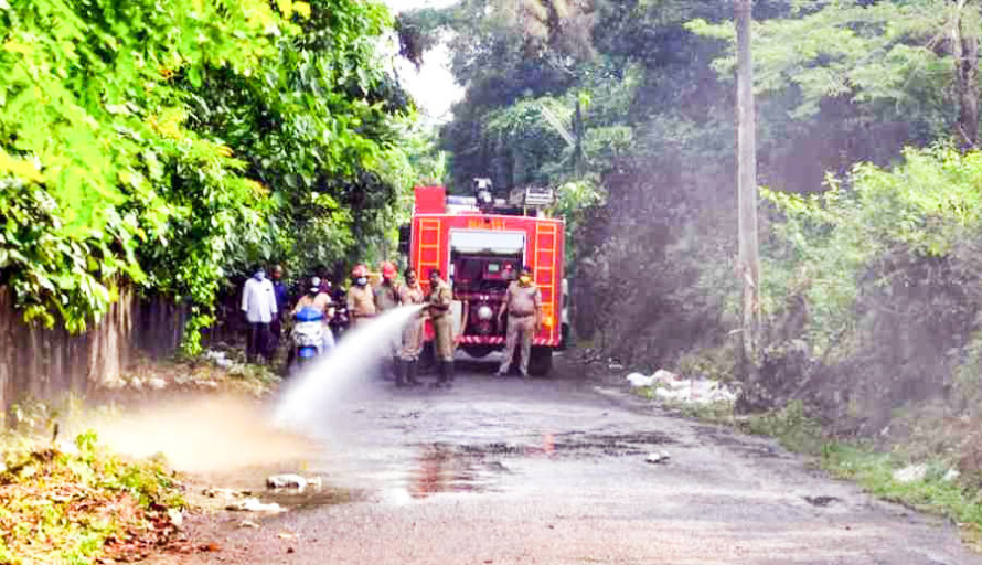 വ്യാഴാഴ്ച പുലർച്ചയാണ് ഈ ഭാഗത്ത് കൈപ്പട മുകൾറോഡിൽ മാലിന്യം തള്ളിയത്. എച്ച്.എം.ടി മെഡിക്കൽ കോളജ് റോഡിൽനിന്ന് കൈപ്പടമുഗളിലേക്ക് പ്രവേശിക്കുന്ന ഭാഗത്തായിരുന്നു മാലിന്യം തള്ളിയത്. റോഡിൽ പരന്നതിനാൽ വാഹനങ്ങൾക്കുപോലും കടന്നുപോകാൻ കഴിയാത്ത അവസ്ഥയിലായിരുന്നു. പിന്നീട് വാർഡ് കൗൺസിലർ സൽമത്ത് സെയ്തുമുഹമ്മദ് അറിയിച്ചതനുസരിച്ച് അഗ്നിരക്ഷാസേനയെത്തി റോഡും പരിസരവും കഴുകി വൃത്തിയാക്കുകയായിരുന്നു.