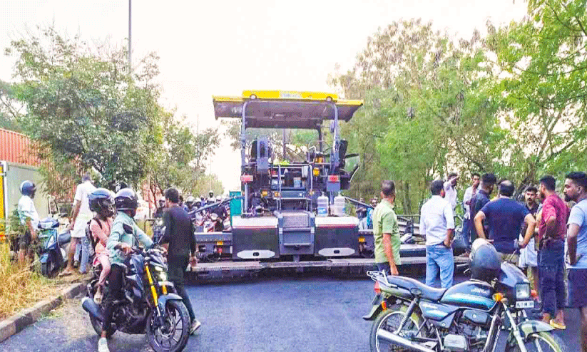 ടാറിങ് യന്ത്രം റോഡിൽ നിർത്തിയിട്ടു; വല്ലാർപാടം പാതയിൽ മണിക്കൂറുകളോളം ഗതാഗതക്കുരുക്ക്