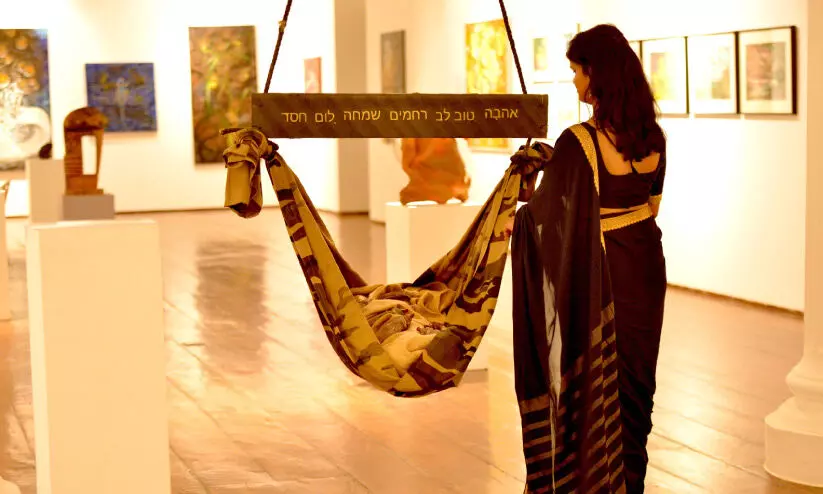 ക്യാപ്ചയിലേക്ക് പ്രവേശിക്കുമ്പോൾ തന്നെ ഫലസ്തീനിലെ ഗസ്സയിൽ കൊല്ലപ്പെട്ട നൂറുകണക്കിന് പിഞ്ചുകുഞ്ഞുങ്ങളുടെ പ്രതിനിധിയായി ഒരു കുരുന്ന് തൊട്ടിലിൽ മരിച്ചുകിടക്കുന്നതു കാണാം. അവനുചുറ്റും രക്തം ചുരത്തുന്ന ഒട്ടേറെ പാൽക്കുപ്പികളുണ്ട്. ഇസ്രയേൽ പട്ടാളവേഷമൊരുക്കുന്ന തുണിയിലാണ് ആ തൊട്ടിലൊരുക്കിയിട്ടുള്ളത്. കലാപ്രദർശനം ആസ്വദിക്കാനെത്തുന്നവരുടെയെല്ലാം ഉള്ളുനോവിക്കുന്ന ഈ ഇൻസ്റ്റലേഷൻ ഒരുക്കിയിട്ടുള്ളത് കൊടുങ്ങല്ലൂർ സ്വദേശി റാഫി പ്രചരയാണ്. വർത്തമാന ഇന്ത്യയിലെ ഇരട്ടനീതിയെ ചിത്രീകരിക്കുന്നതുൾപ്പടെ നാല് ശിൽപപ്രദർശനങ്ങളും ഇദ്ദേഹത്തിന്റേതായി ഉണ്ട്.