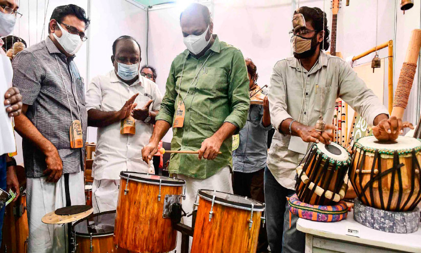 text_fieldsമലമുഴക്കി ബാൻഡിെൻറ സ്റ്റാളിലെ മുളയിൽ തീർത്ത സംഗീതോപകരണത്തിൽ