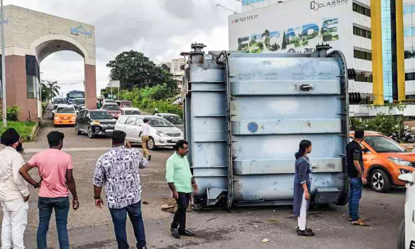 ട്രെയ്ലറിൽനിന്ന് കൂറ്റൻ ട്രാൻസ്ഫോർമർ റോഡിൽ വീണു; മണിക്കൂറോളം ഗതാഗതം സ്തംഭിച്ചു