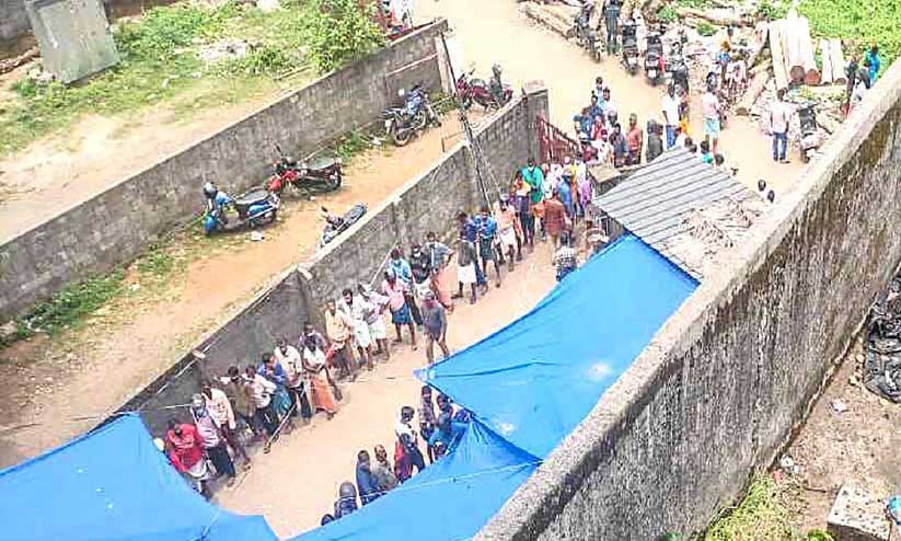അന്തര് സംസ്ഥാനക്കാരും നാട്ടുകാരും ഉൾപ്പെടെയുള്ളവര് യാതൊരു മാനദണ്ഡങ്ങളും പാലിക്കാതെയാണ് വരി നിന്നത്. നൂറിലധികം ആളുകള്ക്കിടയില് മാസ്ക് ധരിക്കാത്തവര് നിരവധിയായിരുന്നു. 20 പേര്ക്ക് നില്ക്കാവുന്ന സ്ഥലത്താണ് ആള്ക്കൂട്ടം നിരന്നത്. പ്രവൃത്തി ദിവസങ്ങളില് സ്ഥിരം ആള്ക്കൂട്ടമാണെന്നാണ് വിവരം.