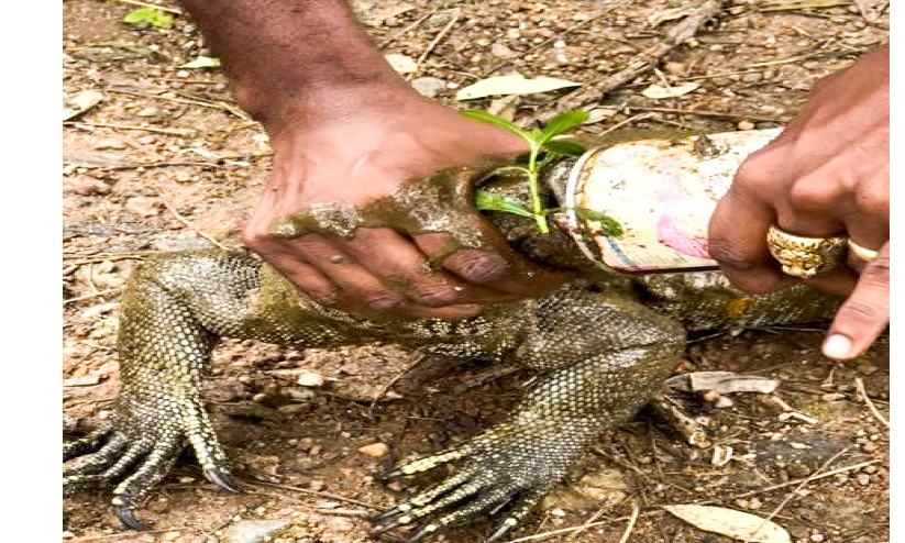 പാത്രത്തിൽ കുടുങ്ങിയ ഉടുമ്പിനെ രക്ഷിച്ചു