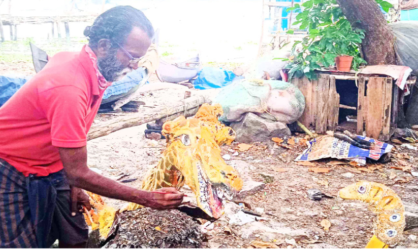 ഒഴുകിയെത്തും മരത്തടികളിൽ വർണങ്ങൾ തീർത്ത് നാസർ