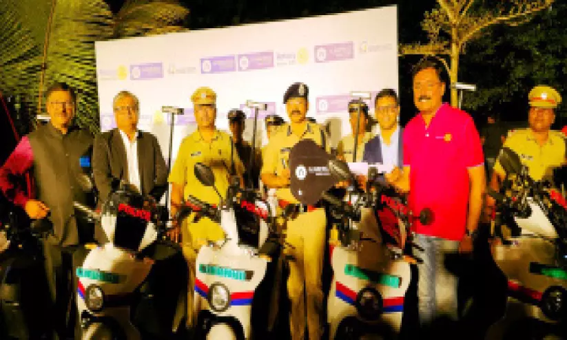കൊച്ചി സിറ്റി പൊലീസിന് ഇലക്ട്രിക് സ്കൂട്ടറുകൾ കൈമാറുന്നു