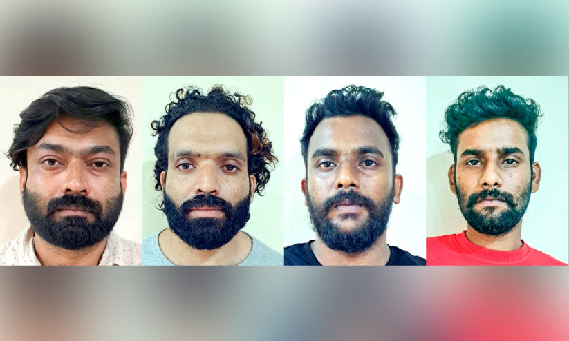 എറണാകുളം കളമശ്ശേരി എച്ച്.എം.ടി കോളനിയിൽ കളപ്പുരക്കൽ വീട്ടിൽ ഷാഹുൽ ഹമീദ് (35), തൃക്കാക്കര നോർത്ത് വില്ലേജ് ഞാളുകരയിൽ തീണ്ടിക്കൽ വീട്ടിൽ സനൂപ് (33), ആലുവ പള്ളിയാംകരയിൽ ചാളയിൽ വീട്ടിൽ സുനീർ (26), ഏലൂർ കുറ്റിക്കാട്ടുചിറ കോട്ടപറമ്പ് വീട്ടിൽ ശരവണകുമാർ (28) എന്നിവരെയാണ് ഇൻഫോപാർക്ക് പൊലീസ് സ്റ്റേഷൻ ഇൻസ്പെക്ടർ പി.ആർ. സന്തോഷിന്റെ നേതൃത്വത്തിൽ എസ്.ഐ ശ്രീജിത്ത്, സീനിയർ സിവിൽ പൊലീസ് ഓഫിസർ സാബു, ബിയാസ്, സിവിൽ പൊലീസ് ഓഫിസർ ശരത്ത് എന്നിവരടങ്ങിയ സംഘം അറസ്റ്റ് ചെയ്തത്.ഇവർ ആലുവ, കളമശ്ശേരി, ഏലൂർ, തൃക്കാക്കര ഇൻഫോപാർക്ക് സ്റ്റേഷനുകളിൽ നിരവധി കേസുകളിൽ പ്രതികളാണ്.