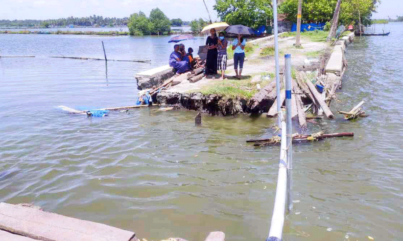 കണ്ടക്കടവ് പാടശേഖരത്തിലെ ബണ്ട് തകർന്നു ; 20 കുടുംബം ഒറ്റപ്പെട്ടു