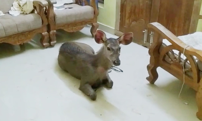 കുട്ടമ്പുഴയിൽ വീടിനകത്തേക്ക് മ്ലാവ് ഓടിക്കയറി