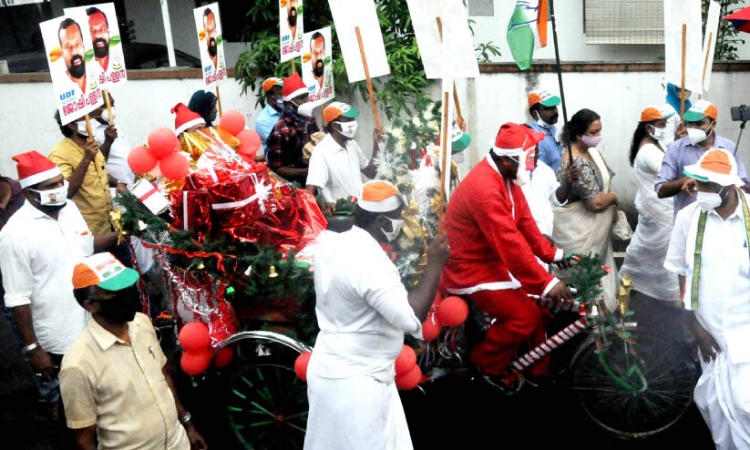 text_fieldsകൊച്ചി കോർപറേഷൻ ഡിവിഷൻ 43ലെ യു.ഡി.എഫ് സ്ഥാനാർഥി ജോഷി പള്ളൻ സാന്താക്ലോസുമായി പ്രചാരണത്തിന് പി.ടി. തോമസ് എം.എൽ.എയുടെ ഓഫിസിൽനിന്ന് പുറപ്പെട്ടപ്പോൾ