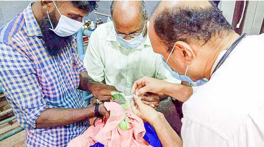text_fieldsതത്തയുടെ കാലിലെ വളയം മുറിച്ചു മാറ്റാനുള്ള ശ്രമത്തിൽ