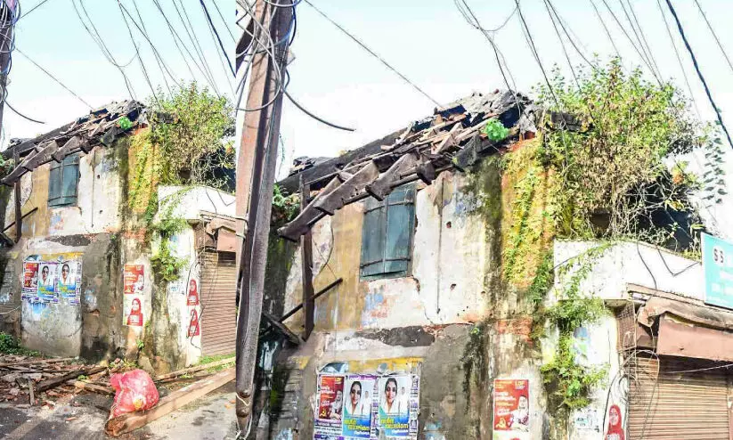 മട്ടാഞ്ചേരി ബസാറിലെ പൗരാണിക കെട്ടിടത്തിന്റെ മേൽക്കൂര തകർന്നുവീണു